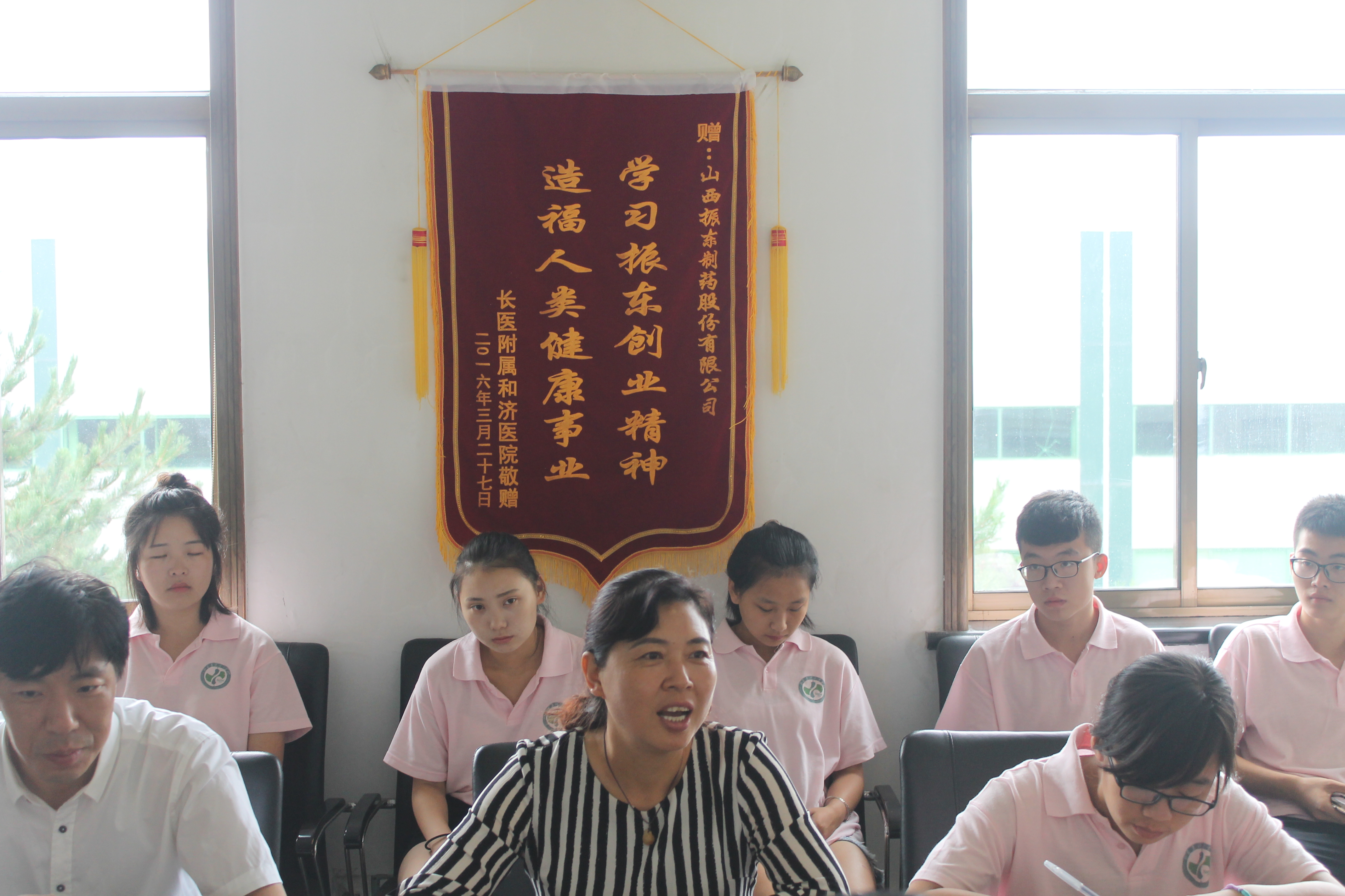 实践队指导教师李朝霞发言,她讲,首先感谢振东制药股份有限公司提供的实践平台,给大家提供了一个实践学习的机会;其次,感谢企业所提的建议,在日后的教学中会注重学生实践能力的培养,做好学生自身的职业规划;再次,感谢本次校企交流的机会,使学院及时掌握到了行业的动态。