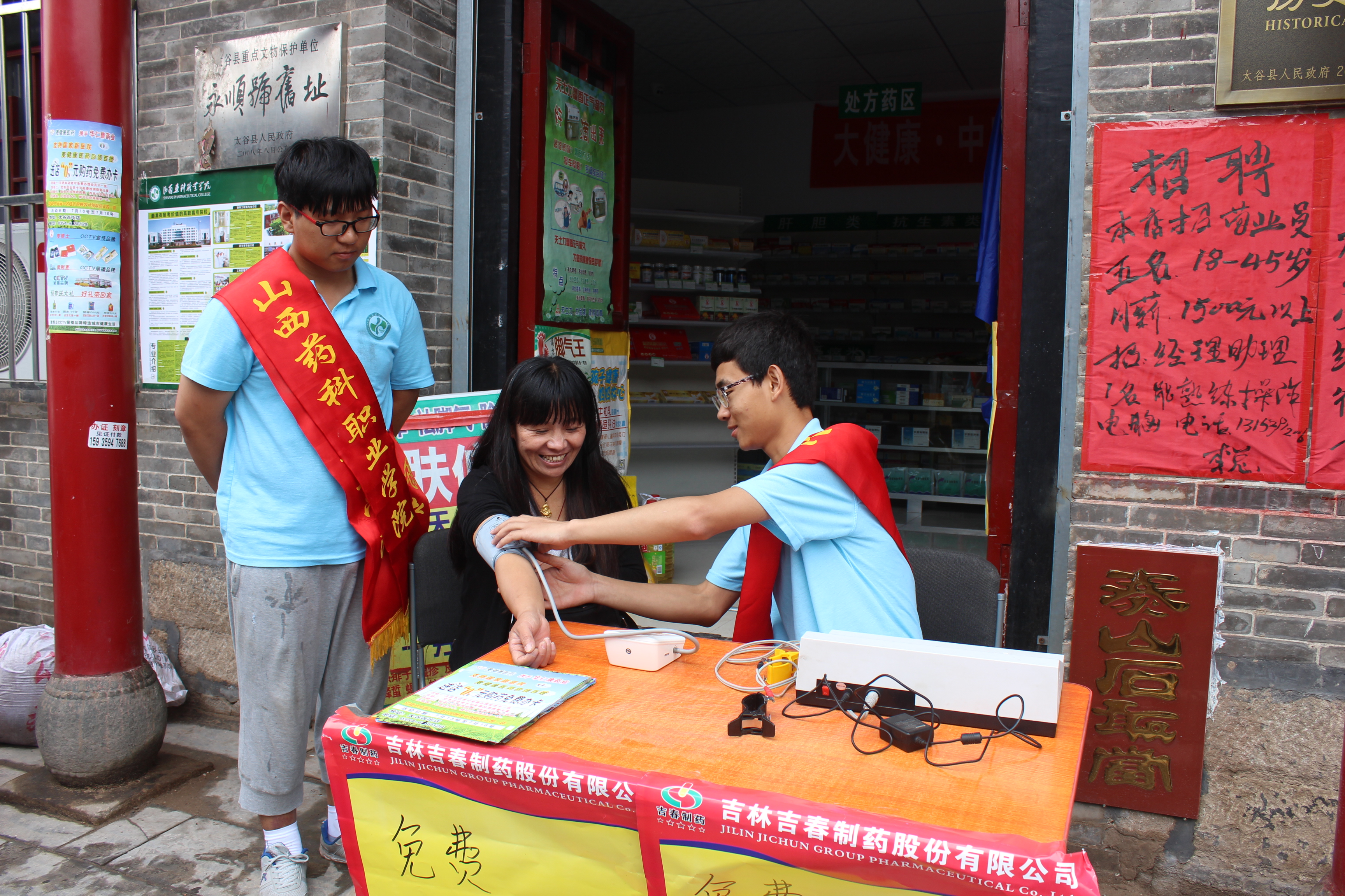 上午9点,赴太谷社会实践队出分成两个小队分别到达华仁康药业旗下两个药店。每个小组都在店长的帮助下,很快便了解了药店内药品陈列以及储存以及购买药品时应注意哪些问题。同学们在药店内自行参观,店长又讲解了在药店经营中要遵循的规章制度。其中,张浩东同学带领的队员还在药店门口实习为前来买药的客户免费测量血压。参观学习后,实践队员们做起了志愿者,帮助各药店进行卫生大扫除。