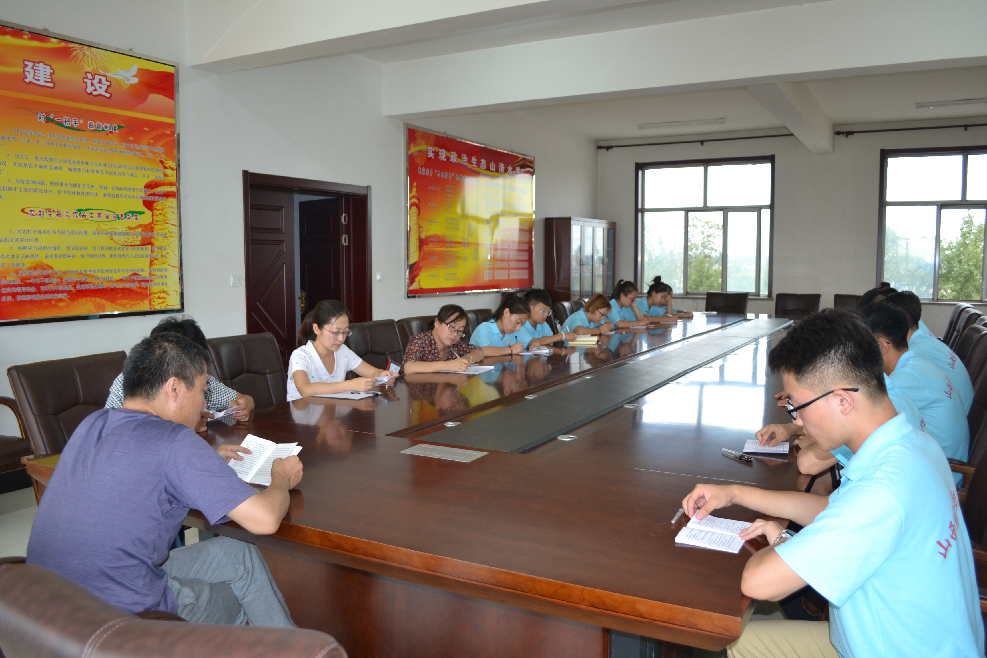 在中国共产党成立95周年之际,为提升实践队员政治素养,7月11日下午,赴怀仁县新家园乡社会实践团在新家园乡政府会议室开展了”两学一做”、“双学一跟”学习教育。指导教师白利勇老师主持此次学习活动。