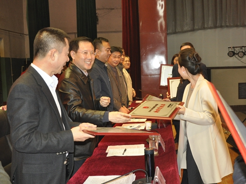 图为领导为优秀组织单位颁奖