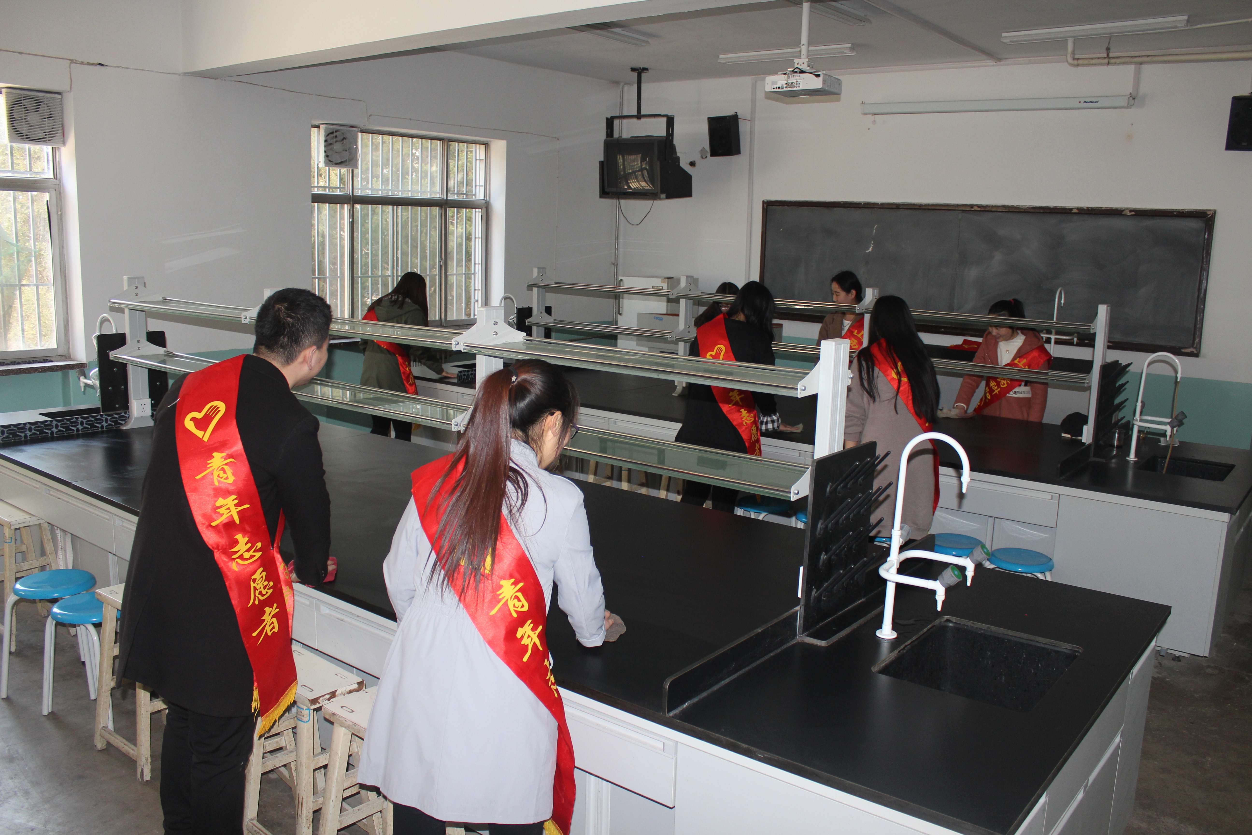活动伊始,志愿者们满怀热情来到实训楼,在社会实践部成员的带领下,大家有条不紊地打扫实训室卫生,有的擦桌子扫地,有的整理仪器,有的修理凳子等损坏了的物品,认真、细心地擦洗着实训室的每一个角落,打扫各处垃圾死角。大家发扬不怕脏、不怕累的雷锋精神,互相配合、齐心协力,很快就使实训室回复往日的干净整洁。