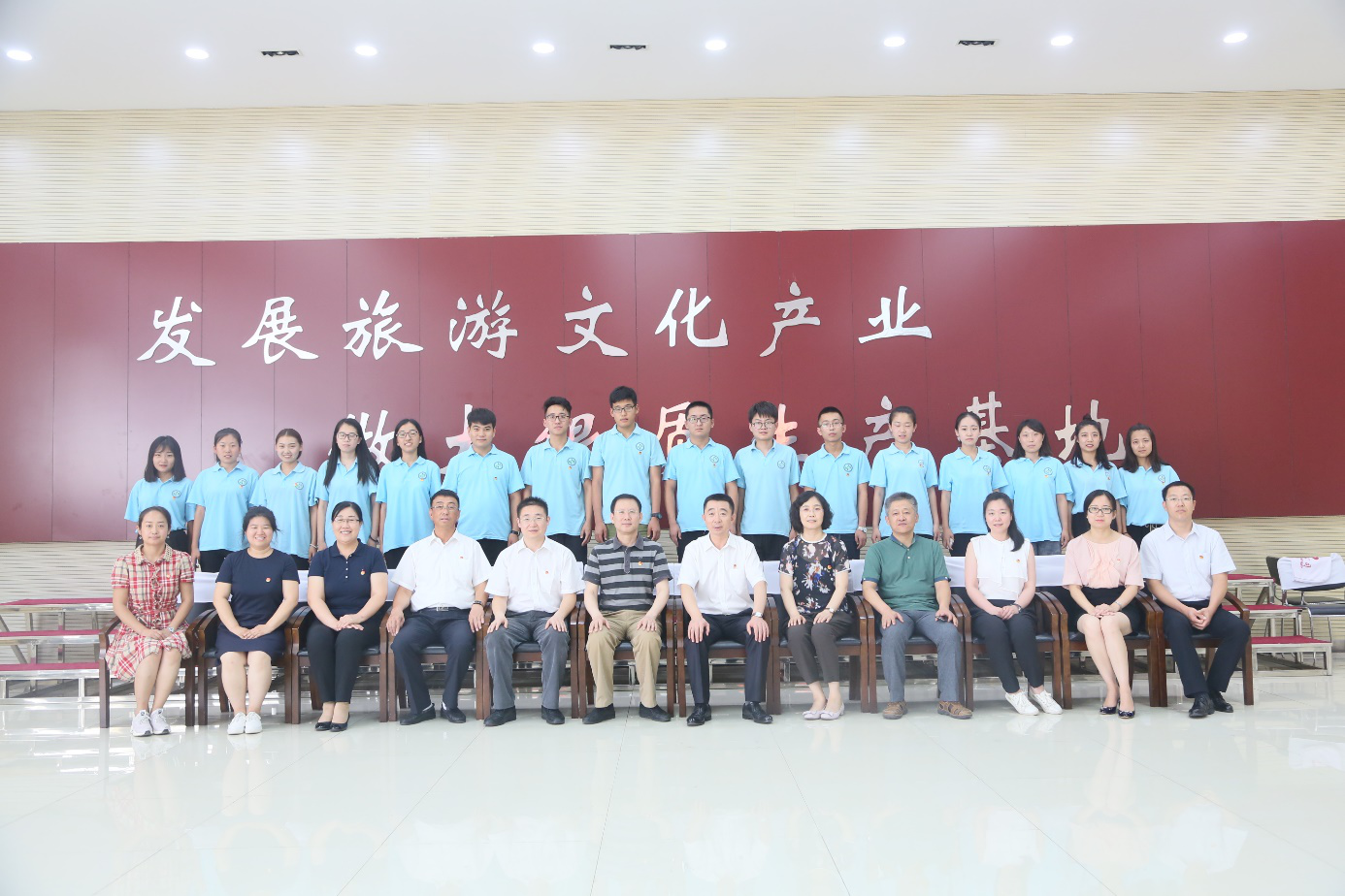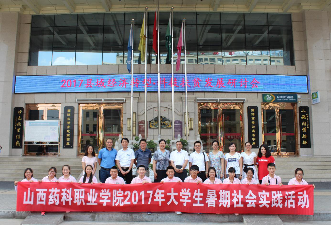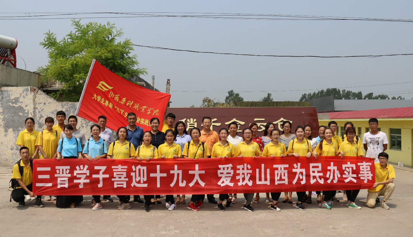 院党委书记张瑞芳,院党委副书记邹本贵,院党委委员、副院长王仙芝与赴晋银集团社会实践团师生合影留念