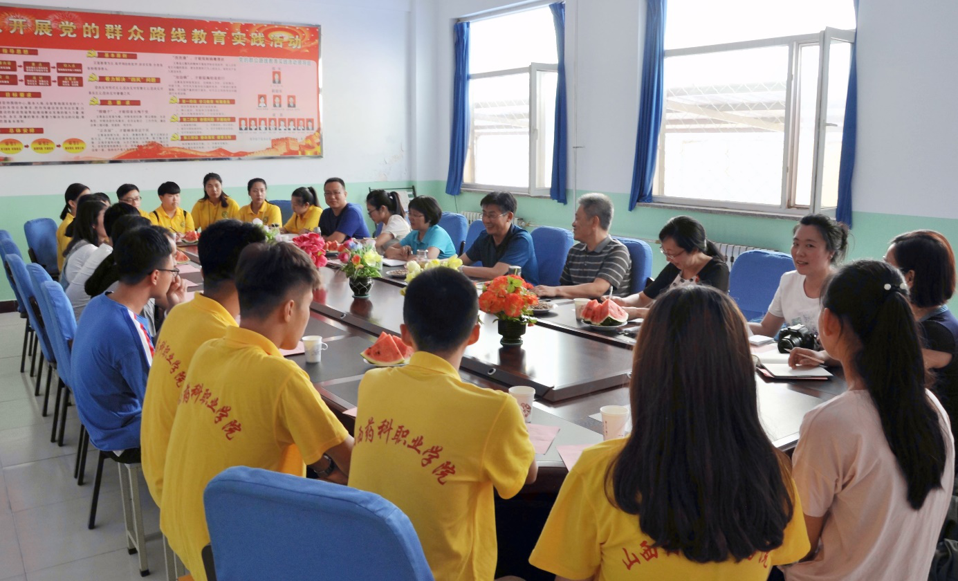 院党委书记张瑞芳与赴榆社社会实践团队员亲切交流,领队程俊锋介绍实践活动开展情况