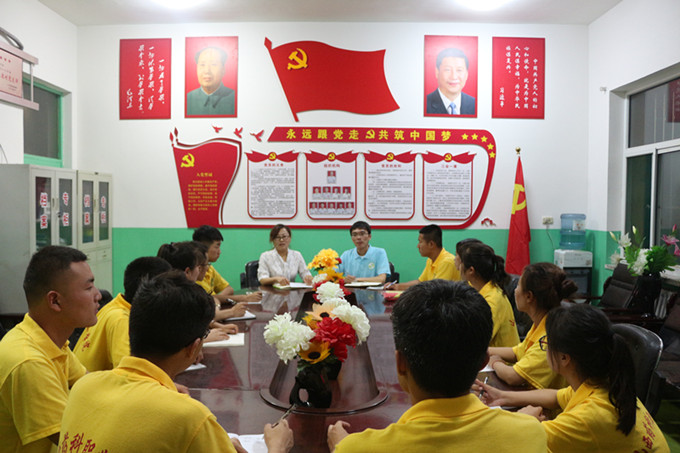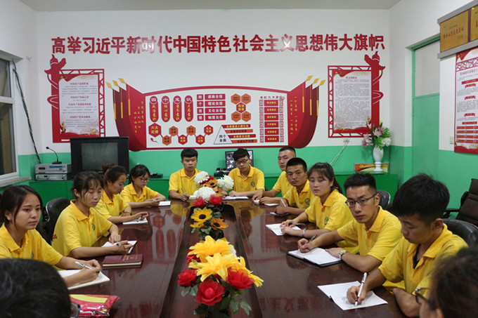 到达后,领队老师组织全体队员与驻村帮扶工作队一起召开了座谈会。会上,驻村第一书记贾彬良简要介绍了府底村的基本情况以及脱贫攻坚工作中所取得的成绩,并对实践队员的到来表示热烈欢迎。会议宣读了社会实践活动方案,并对下一步活动内容进行了详细安排部署。会后,实践队成立了临时党支部和临时团支部,并进行庄严宣誓,为在实践过程中能够有效地统一思想,增强凝聚力,高效地开展各项工作提供了强有力的组织保障。