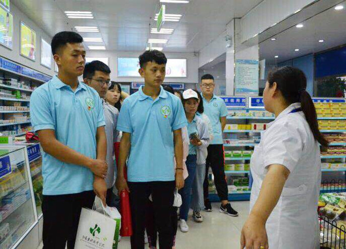 好药师大药房是九州通医疗集团旗下的一个子公司。依托九州通强大的公司实力和医药配送体系,致力于做中国医药零售连锁最专业的药房。在省中医院,药房负责人首先对大家的到来表示欢迎,并向队员们介绍了药房的基本情况。中式风格的药房整洁典雅,还设有专门的休息区,非常的人性化。随后,实践队员们在店长的带领下参观了药房的处方区、非处方区,西药区及中药区。队员们发现药品的区分和摆放多按剂型或用途以及储存要求分类陈列和储存,即药品与非药品、内服药与外用药应分开存放,易串味的药品与一般药品应分开存放;处方药与非处方药应分柜摆放;特殊管理的药品应按照国家的有关规定存放。例如:生活中常用的氨加黄敏胶囊、头孢类需要放阴凉柜存放;胰岛素则需要冷藏。参观学习过程中,队员们全程用心看,用心听,用心记,积极认真,虚心请教。