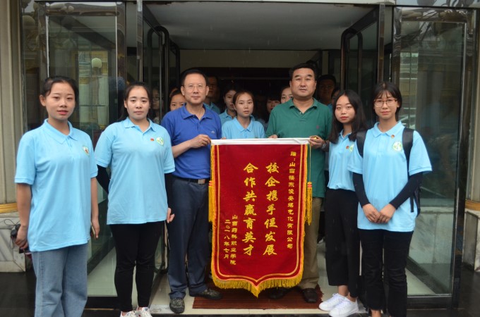 最后,张书记还代表学院向楼东俊安集团表达了感谢,并赠送题有“校企携手促发展,合作共赢育英才”的锦旗。