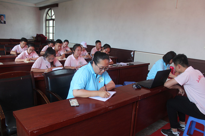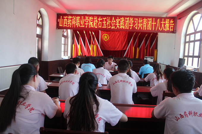 7月14日下午,赴右玉社会实践团临时团支部在右卫镇政府会议室召开“学习共青团十八大精神,争做新时代青年”主题团日活动。临时团支部书记袁庆主持会议。