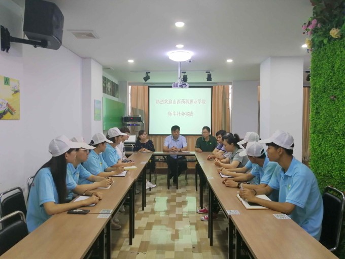 山西药科职业学院暑期社实践活动开展以来,实践队员们一直牵动着学院领导的心。7月14日学院党委委员、副院长贾建斌,宣传统战部部长高建军来到临汾垦荒人绿色食品连锁企业看望在此开展暑期社会实践活动的队员们,并与实践企业员工进行亲切座谈。
