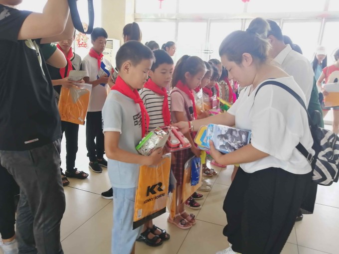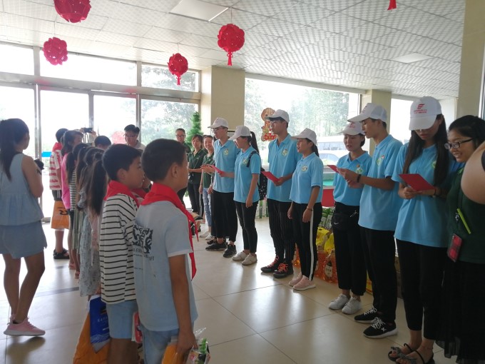 红丝带学校的师生们热情接待了前来献爱心志愿服务的实践队师生队员和企业员工们,一行人参观了红丝带学校的教学和活动区,并为红丝带学校的同学们送来了衣物、绿色食品、学习用品和体育用品。赴临汾暑期社会实践队的每名实践队员都希望可以尽自己的一份微薄之力去帮助这些孩子们。