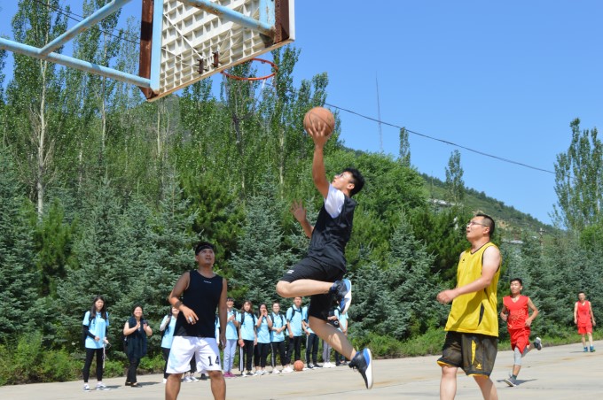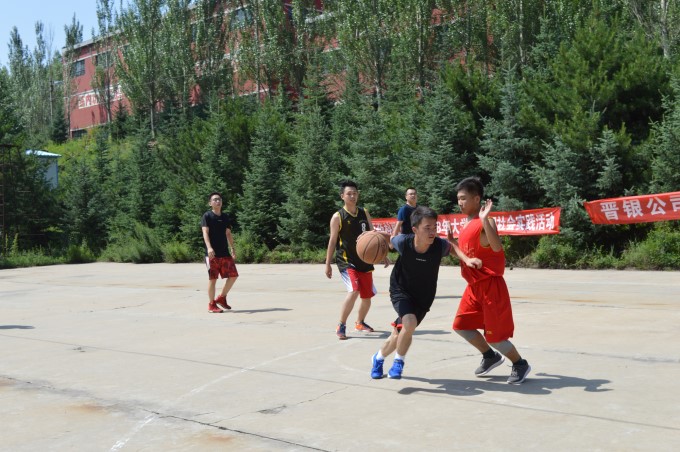 15日下午,实践队员和晋银公司职工在刁泉矿场进行了一场篮球友谊赛。队员们个个雄姿英发,奋力拼搏。利落的抢球、迅速的换场、潇洒的投篮,紧张激烈,难解难分。由实践队员组成的拉拉队员也热情高涨,喊着响亮的口号加油助威。让双方友谊在激烈的比赛中升温加热。