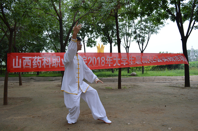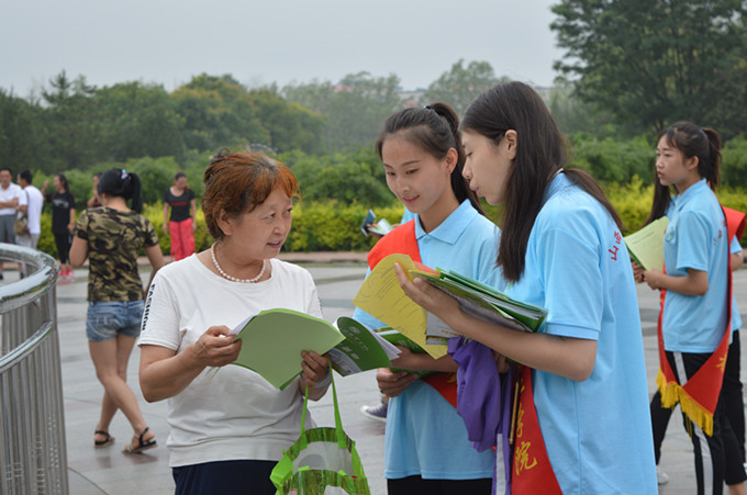 早上6:30,实践队员们来到唐河公园,不仅结合所学专业知识,耐心为居民讲解常见中药材、日常安全用药等知识,并对他们的咨询耐心解答,同时还展示了太极拳、柔力球这两项养生运动。在宣讲过程中,还开展了招生宣传工作。