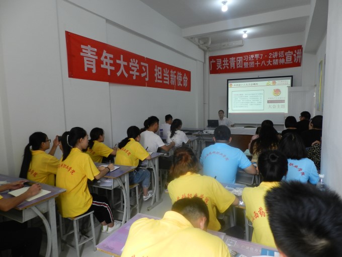 为认真学习贯彻团十八大精神,7月19日上午,广灵县团委书记邓磊磊精彩解读习近平7.2讲话和团十八大报告内容,各地县直乡镇团干部及社会实践团全体成员参加。