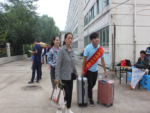 当朝阳还未升起,很多人还在睡梦之时,志愿者们已经在各个迎新点就位,开始了一天的服务活动。他们分工明确,有的在校门口为过往车辆交通指引,对行人进行交通劝导,为新生指引道路,带领他们办理报到手续,有的协助辅导员做好新生报到及各项材料的发放,有的带领学生去学生公寓,帮助新生搬运行李……志愿者们用微笑迎接每一位新生,为新生和家长提供引导、答疑,无论是在校门口、报到处,还是在学生公寓、食堂,随处都可以看到迎新志愿者忙碌的身影。