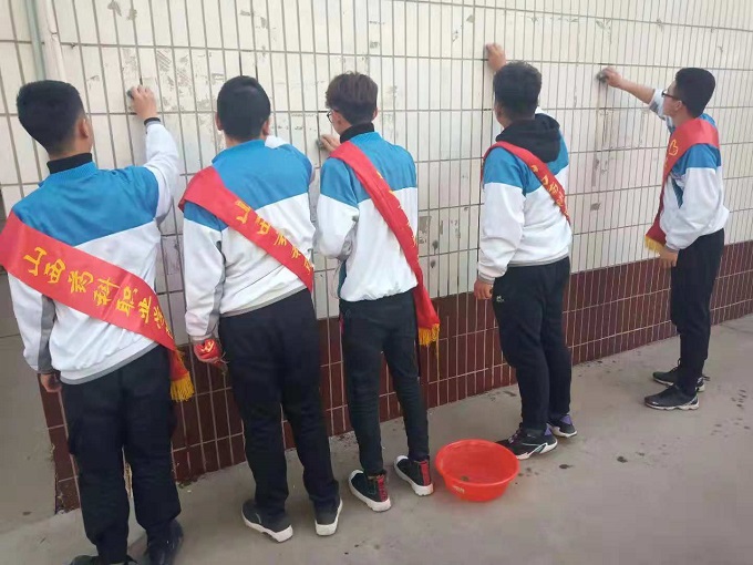 活动过程中,志愿者们擦洗了东教学楼前的宣传栏,并对电教楼、宿舍楼墙面上的小广告一一进行了清理。他们五、六人一组,拿着清洁球、小刀、抹布,可谓是“全副武装”,遇到张贴比较牢固的小广告也能做到随心应手。经过志愿者们的辛勤付出,绝大部分广告被清除了,展现在我们面前的又是一个清爽干净的墙面。