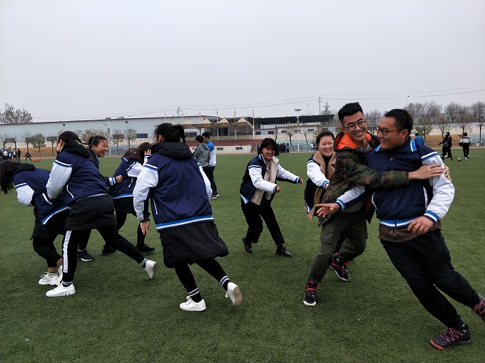 在趣味玩环节中,同学们首先展开了“团团抱”“坐地起身”等小游戏,活跃了气氛,使大家放松心情全身心投入于活动中去。随后,包含党史、时事主题的问答和考验学生勇气与信任的游戏依次开展。比赛中,大家都克服困难,积极的完成了各项挑战,展现了当代大学生的青春活力。在团支书的组织引导下,团日有序进行,现场气氛热烈,吸引了许多同学驻足观看。