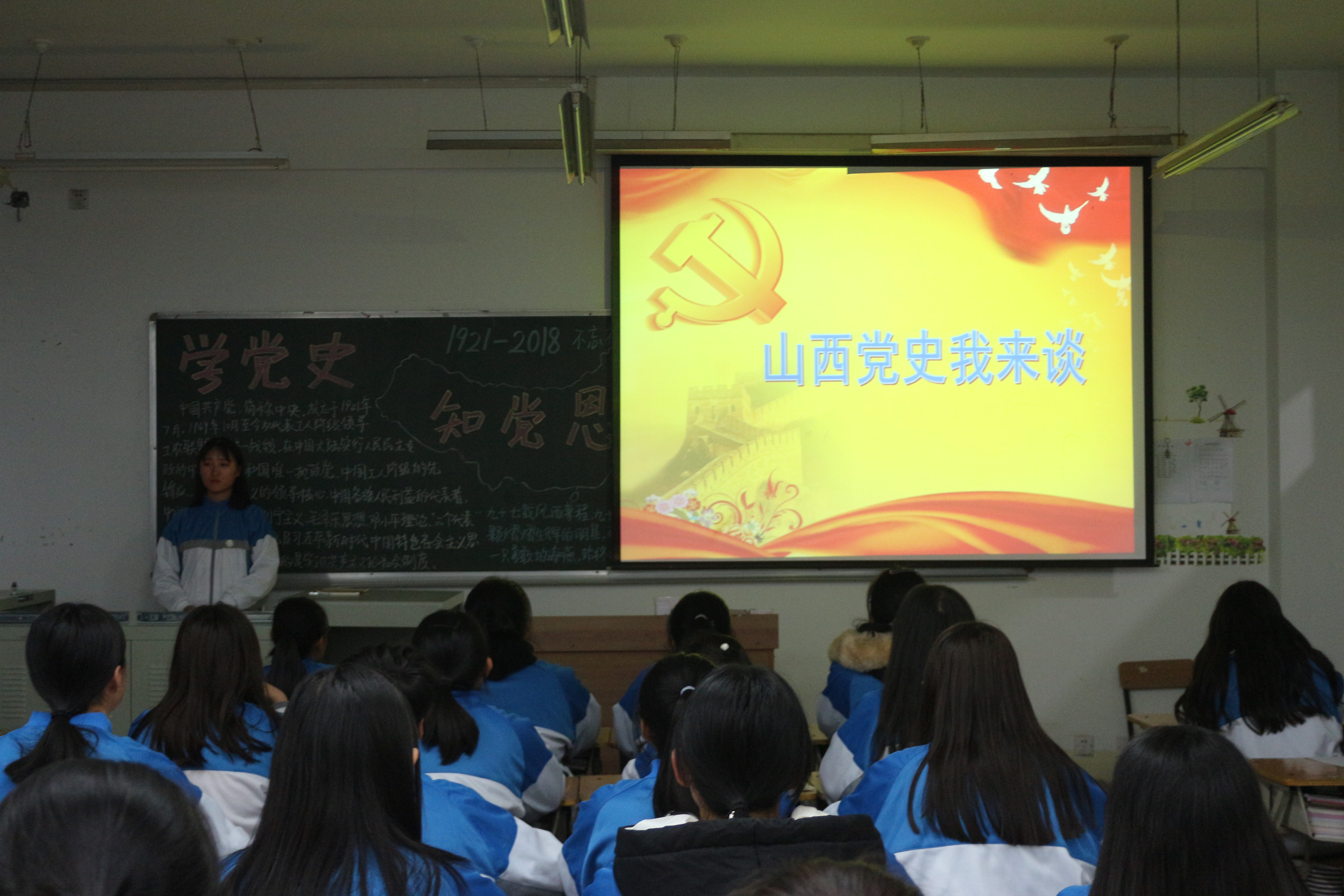 各团支部结合主题积极准备,认真开展,集中组织共青团员学习了《中共山西历史青少年读本》,观看了党史纪录片,在团支书的讲解下,大家了解了党史党情,深化了对党的丰功伟绩的认识,深刻理解了中国共产党的初心和使命就是为中国人民谋幸福、为中华民族谋复兴,进一步增强了在理想追求上的政治定力。最后同学们进行了学习心得交流,大家纷纷表示,没有共产党就没有新中国,无数中国共产党人苦苦探索民族复兴的道路,历经磨难,为了拯救民族危亡进行了艰苦卓绝的斗争,完成了民族独立和人民解放的历史任务,建立了社会主义制度,开创了中国特色社会主义伟大事业,谱写了中华民族发展史上宏伟壮丽的篇章。作为新时代共青团员,要铭记党恩,紧跟党走,以勇于开拓创新的精神,以锲而不舍的努力,为祖国、为山西做出新的贡献!
