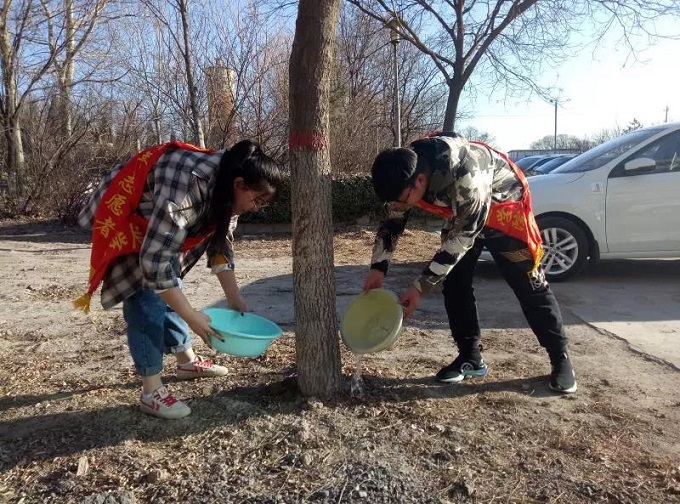 本次浇水活动旨在倡导同学们提高环保意识,从爱树护木的行动做起,为地球的“氧气制造者”服务,为环保行动出一份力。志愿者们手持水桶、水盆准时在东教学楼集合。紧接着,大家热火朝天的干了起来。他们有的在就近水房接水;有的挽起衣袖,认真浇灌学院每棵树。从接水、提水到浇树,志愿者们相互配合,热情高涨。