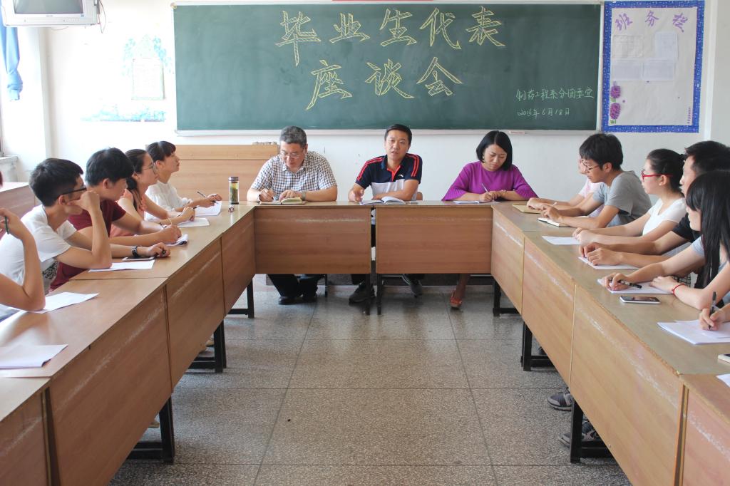 殷殷话别叙离情,声声祝福献母校。6月18日下午,制药工程系2015届毕业生代表座谈会在东教学楼501教室召开。系领导班子成员出席本次座谈会并与大家亲切交谈。