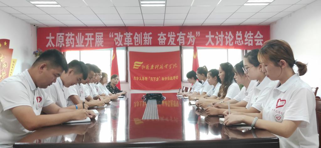 7月14日上午,我院赴太原药业社会实践团在山西太原药业有限公司会议室组织召开社会实践交流分享会,分享这一周社会实践的心得体会和收获,会议由实践团领队张炜老师主持,实践团全体队员参加。
