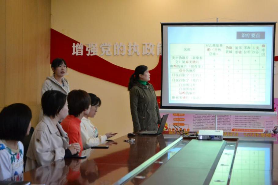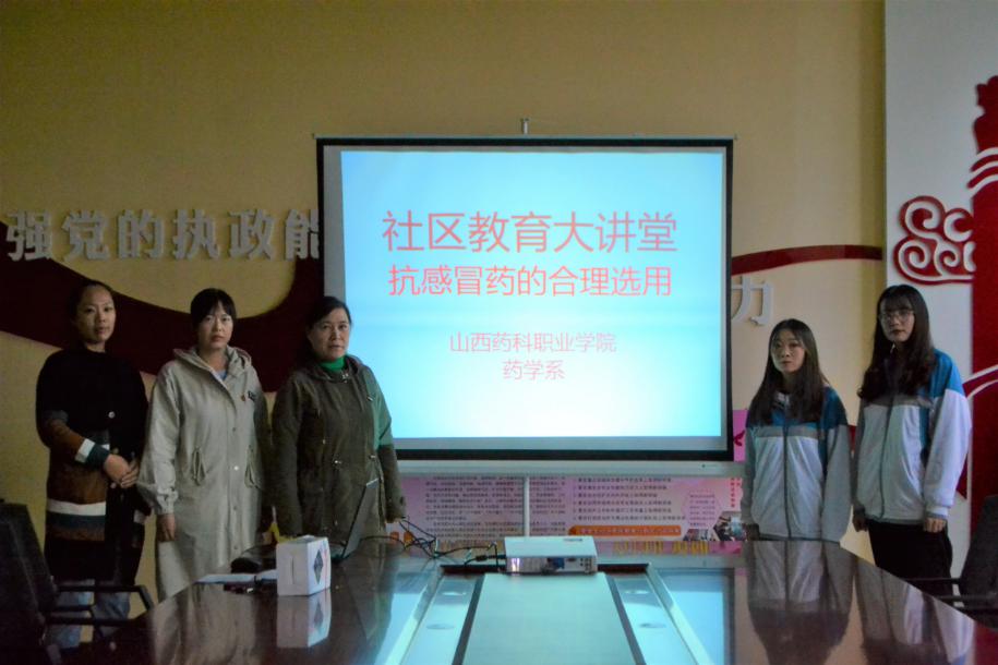 下午两点半,药学系三名志愿者着上身校服,带上系旗、条幅、血压器以及用药知识宣传手册,在药学系吕曦老师、王沛老师和武敏霞老师的带领下安全抵达煤机社区。本次志愿服务活动中,首先,由武敏霞老师对社区居民详细讲解了合理选用抗感冒药的相关知识;其次,为社区党员测量血压;最后,志愿者们向社区居民讲解了一些基本用药的知识,并分发了用药知识宣传页。