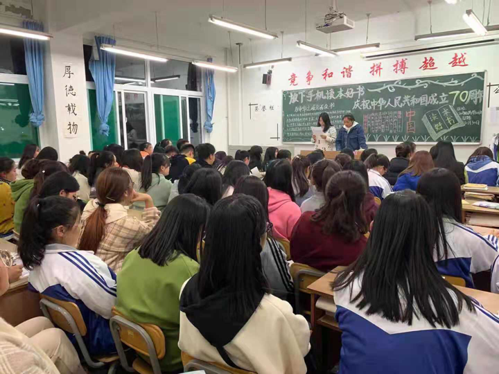 近日,药学系19级全体同学开展了以“庆祝中华人民共和国成立70周年”为主题的“放下手机,读本好书”之我书我秀读书交流会。