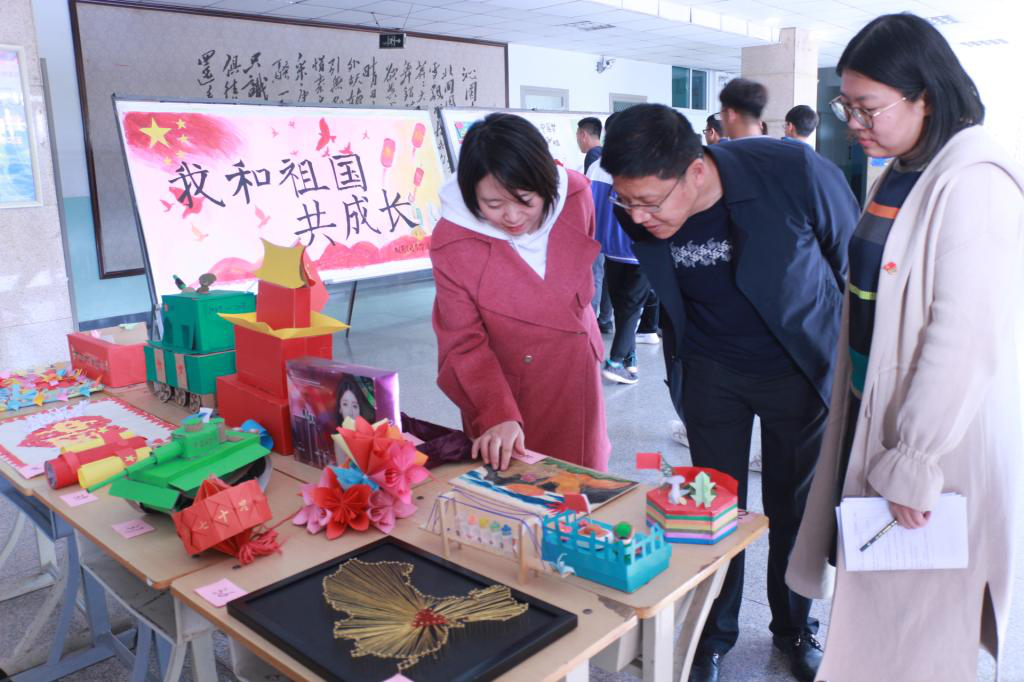 “我和祖国共成长”手工、书画作品展是校园文化艺术节中的一项活动,前期在书画手工作品征集的基础上,经评委组精心评选,本次活动共展出优秀作品192幅,其中各类书法作品95幅,绘画作品47幅,手工艺作品50件。作品内容丰富,形式多样,书法作品风骨雄健,奔放轩昂;绘画作品笔触精致,色彩巧妙;手工作品独具匠心,精雕细琢。同学们以一幅幅饱含真情的画作,抒发家国情怀,表达了祖国的美好祝愿,得到老师和同学们的连声赞叹。