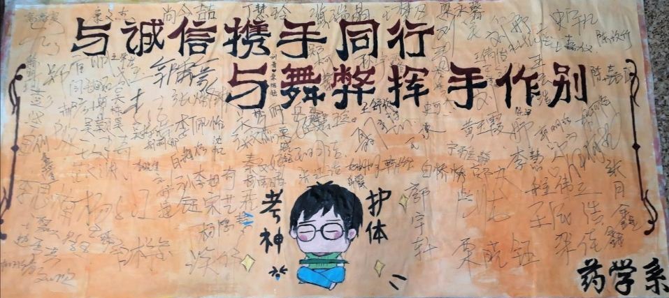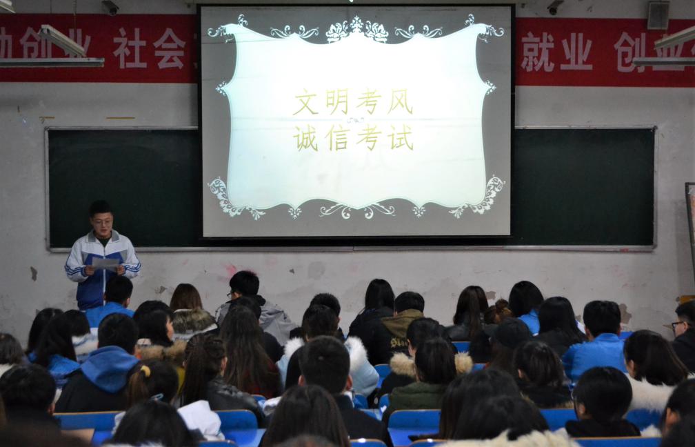为了迎接即将到来的期末考试,药学系于12月24日在东教学楼一层一阶教室开展了以“文明考风,诚信考试”为主题的应考活动。