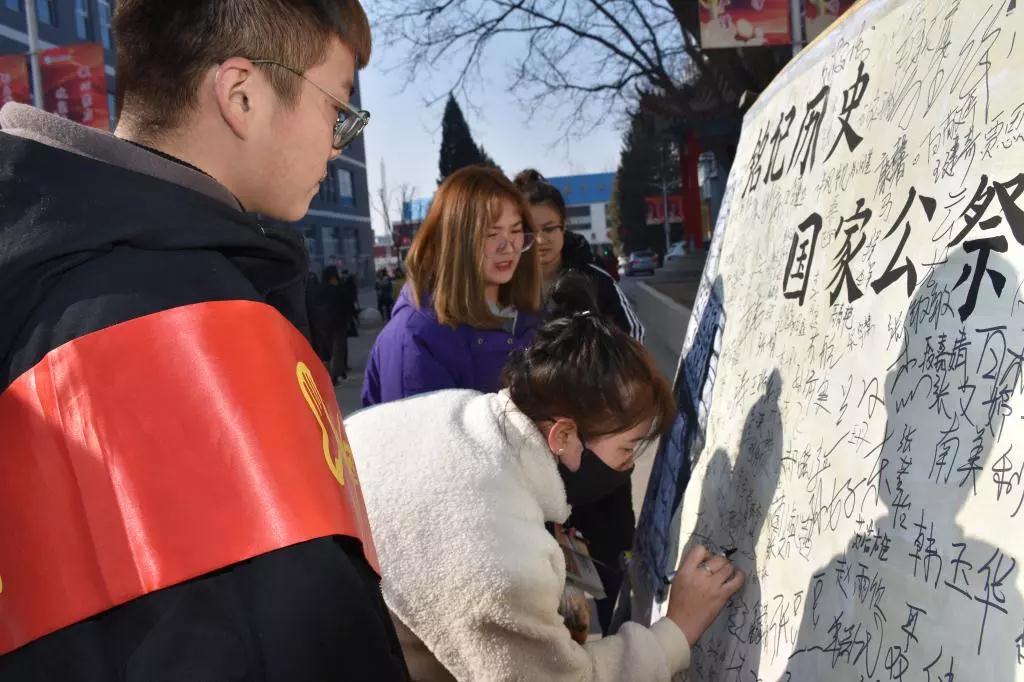 签名活动,加深了同学们对南京大屠杀这段历史的记忆,也更加深刻地意识到侵略战争给中国人民和世界人民带来的深重灾难,我们始终要牢记历史,以史为鉴,勇于承担起民族和国家复兴的重任。