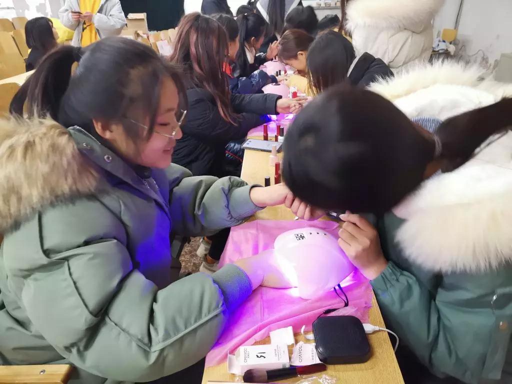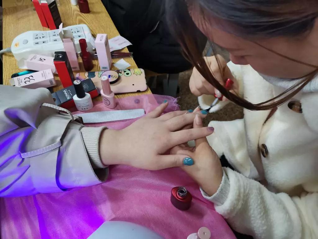 为提高大学生实践能力,丰富课余生活,让学生在实践操作中发扬精益求精的工匠精神,嫣卮社在东教一层二阶开展指尖飞舞“美甲活动”。