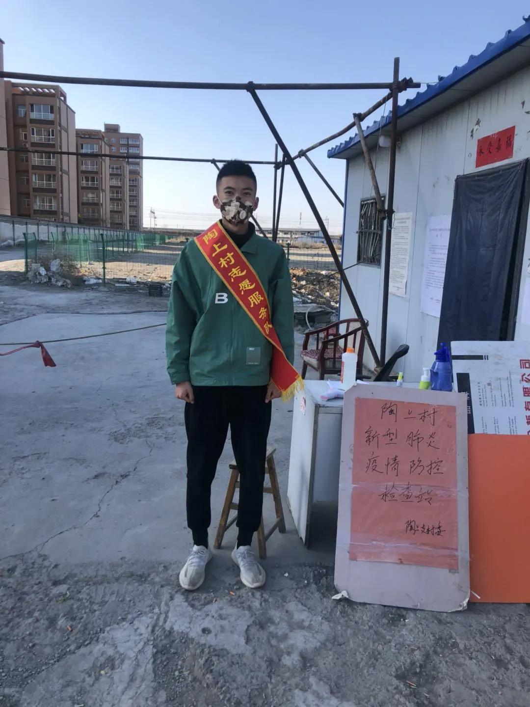 食品工程系郭泰磊,在山西省朔州市进行防疫工作,主要是协助做好外来车辆实时登记,对进入村子的人员测量体温,开展防疫宣传。