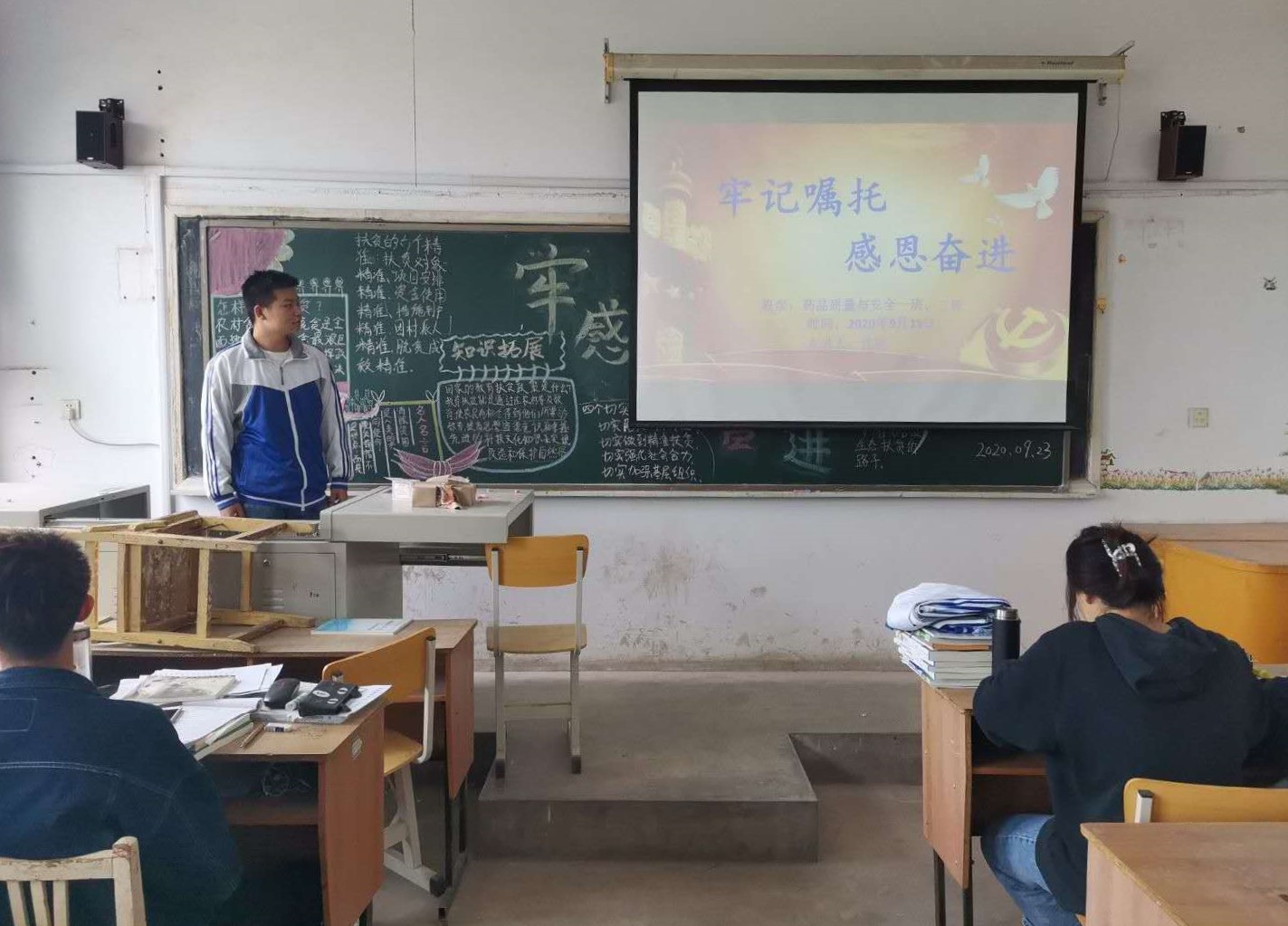 药学系分团委于9月23日在各班开展了以“牢记嘱托,感恩奋进”为主题的团课,着重让药学系系学生深入学习脱贫攻坚精神,树立感恩意识。