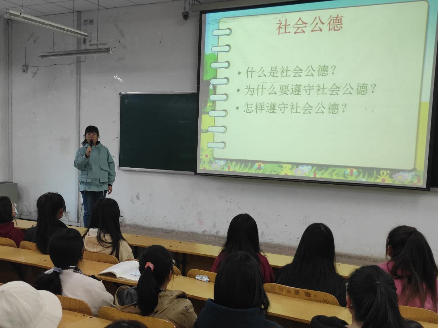 讲座中,张老师先以如何遵守社会公德这个问题与学生们展开讨论,列举了生活中一些不守公德的现象,并指明这些不文明行为是不可取的,要求同学们要树立起正确的人生观、价值观和世界观,做一个健康向上、积极有为的社会主义好青年。接着,张老师通过讲述有关王心仪同学感谢贫穷的文章,教导学生要珍惜现在所拥有的父母的关爱、老师的关怀和同学的关心,要用自己的努力学习来感谢父母、回报社会。