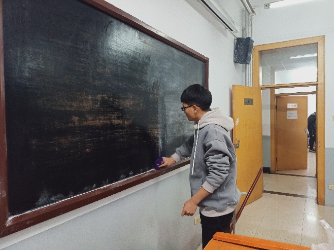 11月26日,报名参加此次活动的44名志愿者准时到达电教中心门口集合。志愿者们在了解了注意事项和清扫内容后,将清扫任务包干到组,并由各组组长带领组员分工清扫,志愿者们的身影不久就遍布在电教中心各个教室,清扫活动有条不紊的进行着。