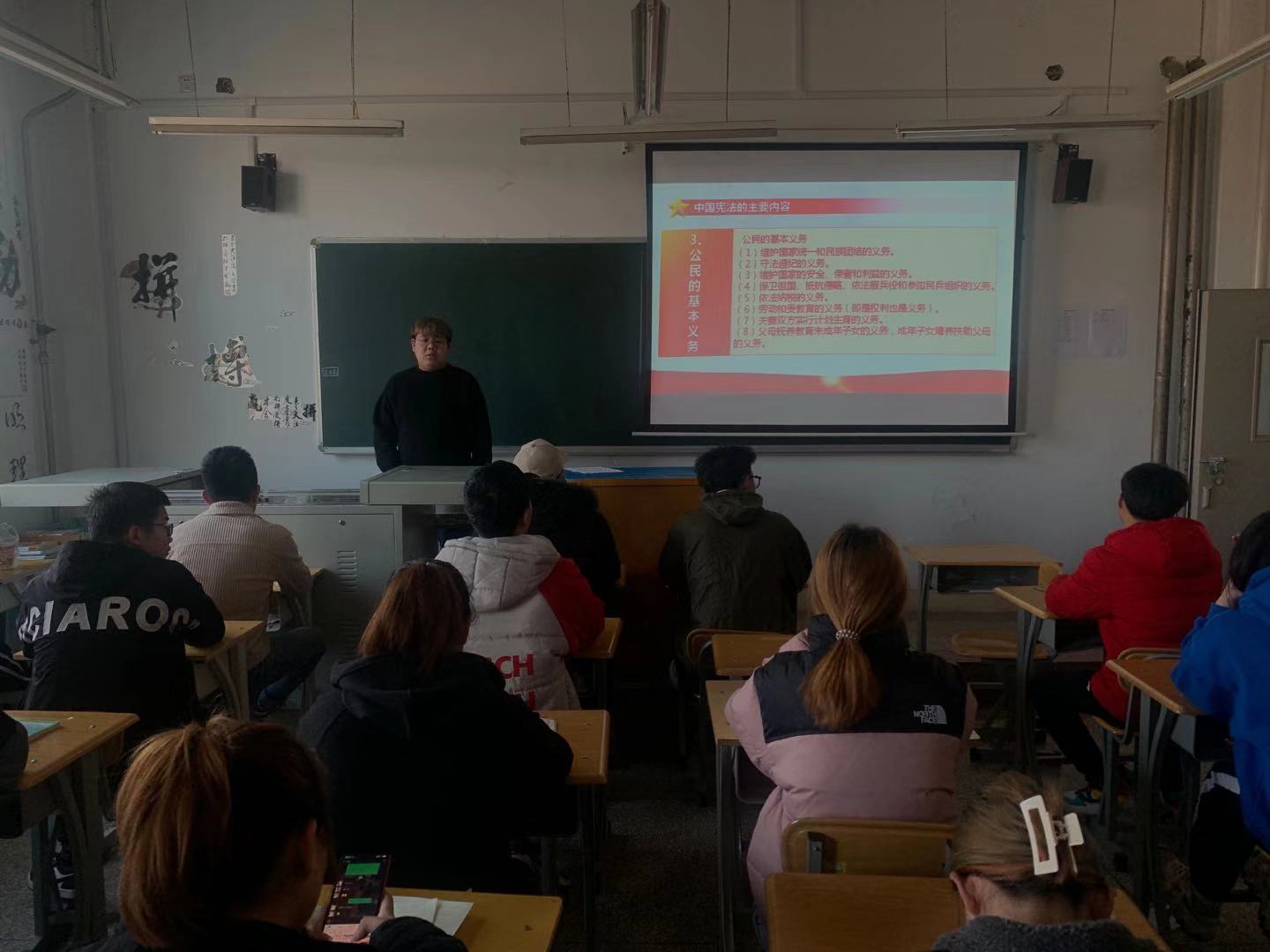 11月下旬起,器械工程系各班级利用早自习时间持续开展了“宪法晨读”活动,在集体诵读、学习了宪法全文的基础上,同学通过学习、分析、讨论一些典型的违宪违法案例,加深了对宪法和我国法律体系的理解,帮助同学们进一步感受到宪法的尊严和法律的神圣,认识到任何组织和个人都不得有超越宪法和法律的特权,从而不断增强宪法意识,提升知法、懂法、用法的能力。
