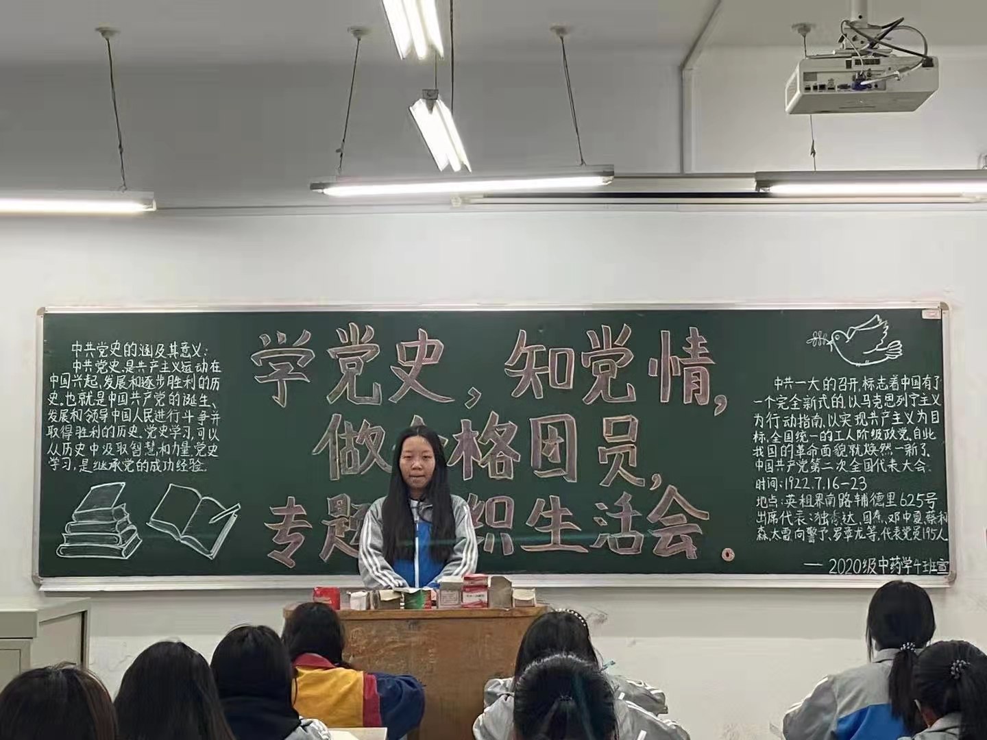 为庆祝中国共产党成立100周年,进一步推进党史学习教育,引导广大团员青年了解党的辉煌历史,感悟党的初心使命,领会党的创新理论,体认党的精神谱系,传承党的红色基因。近日,中药系分团委组织各团支部开展“学党史,跟党走,做合格团员,专题组织生活会”。