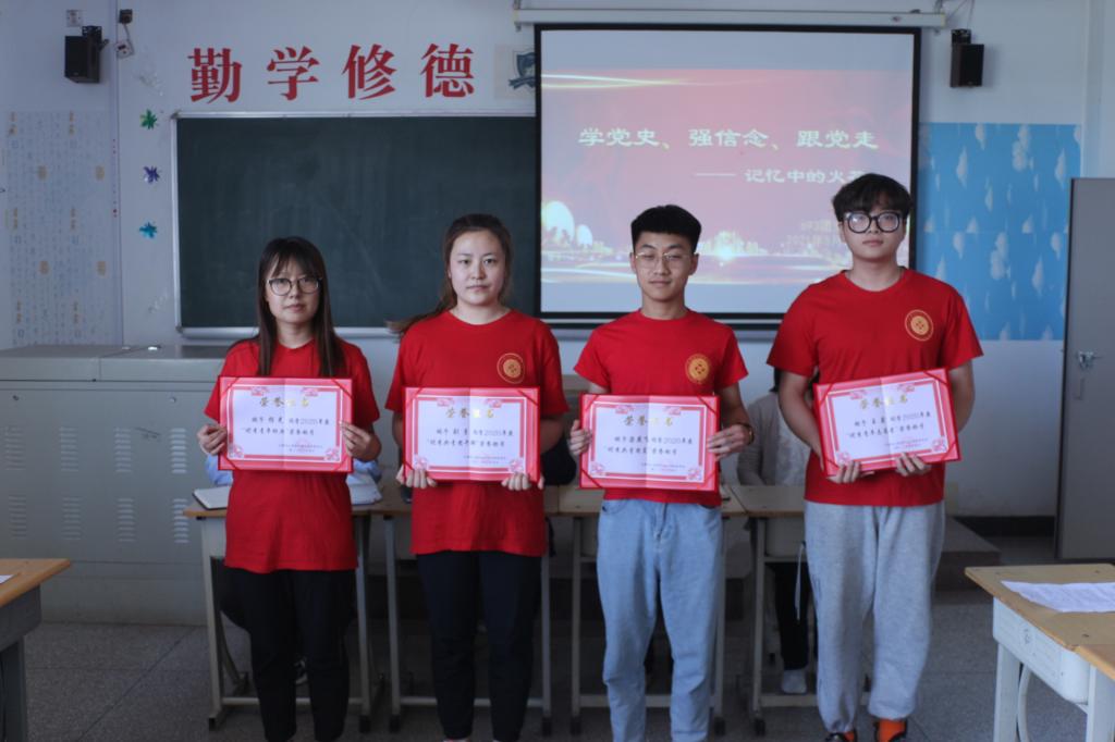 本次主题团日活动在激昂的团歌中拉开帷幕,张院长首先代表学院亲自为团支部成员荣获“优秀共青团员”荣誉等先进个人颁发了奖状,并对他们表示祝贺和鼓励。