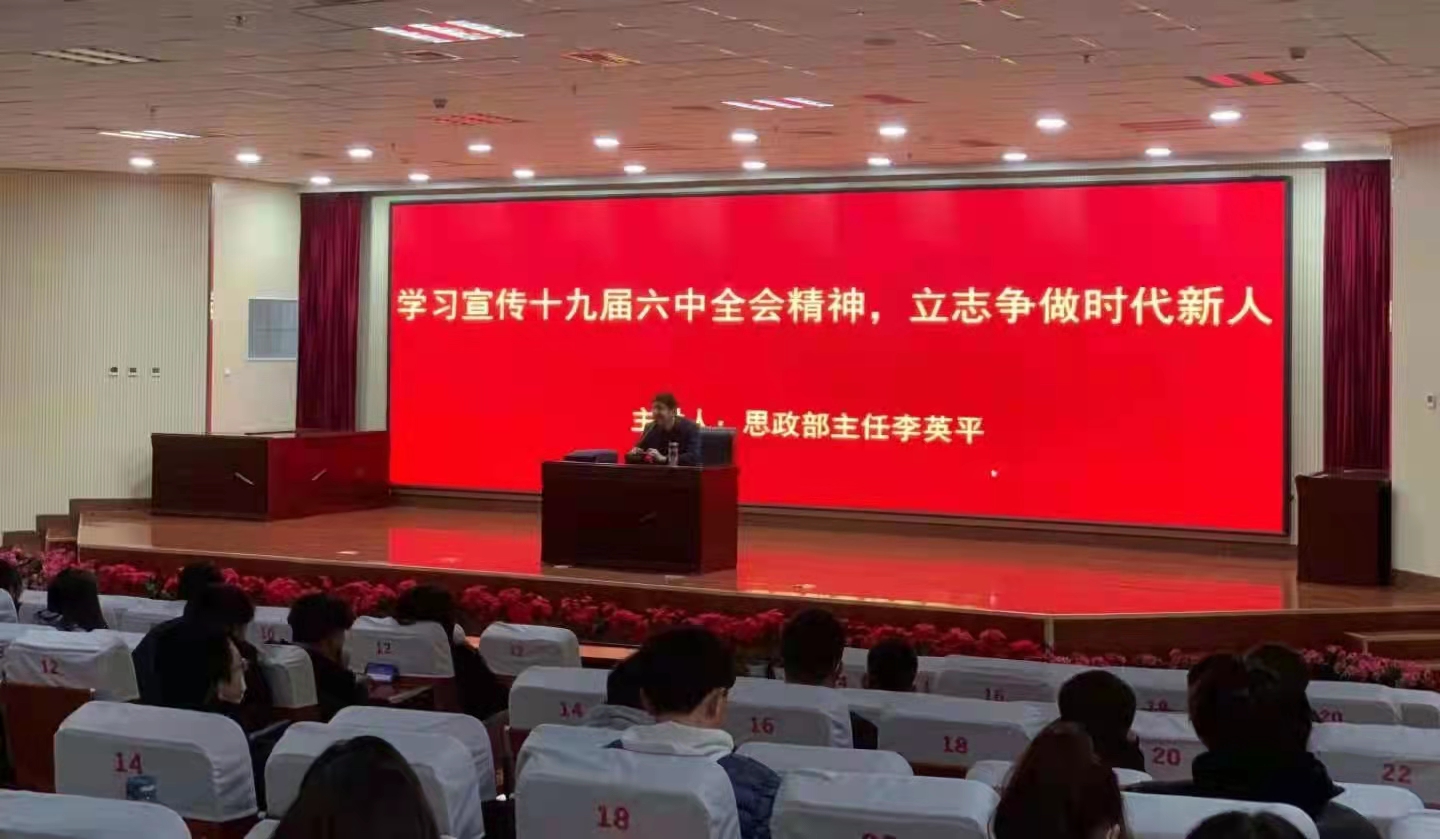 为深入学习贯彻党的十九届六中全会精神,迅速掀起学习宣传贯彻党的十九届六中全会精神新高潮,12月20日,院团委邀请思政部主任李英平面向青年开展了党的十九届六中全会精神宣讲。