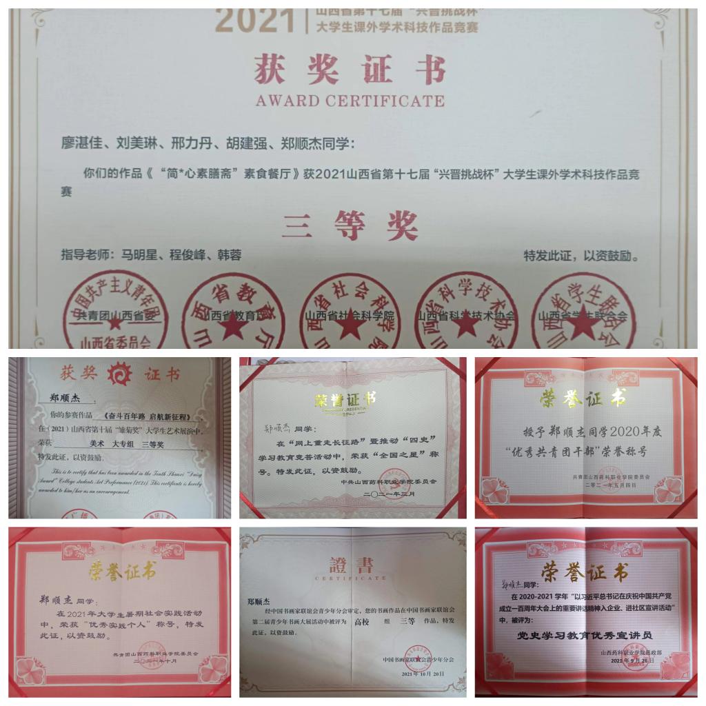 2021年10月荣获山西省第十七届兴晋挑战杯大学生课外学术科技作品竞赛三等奖;