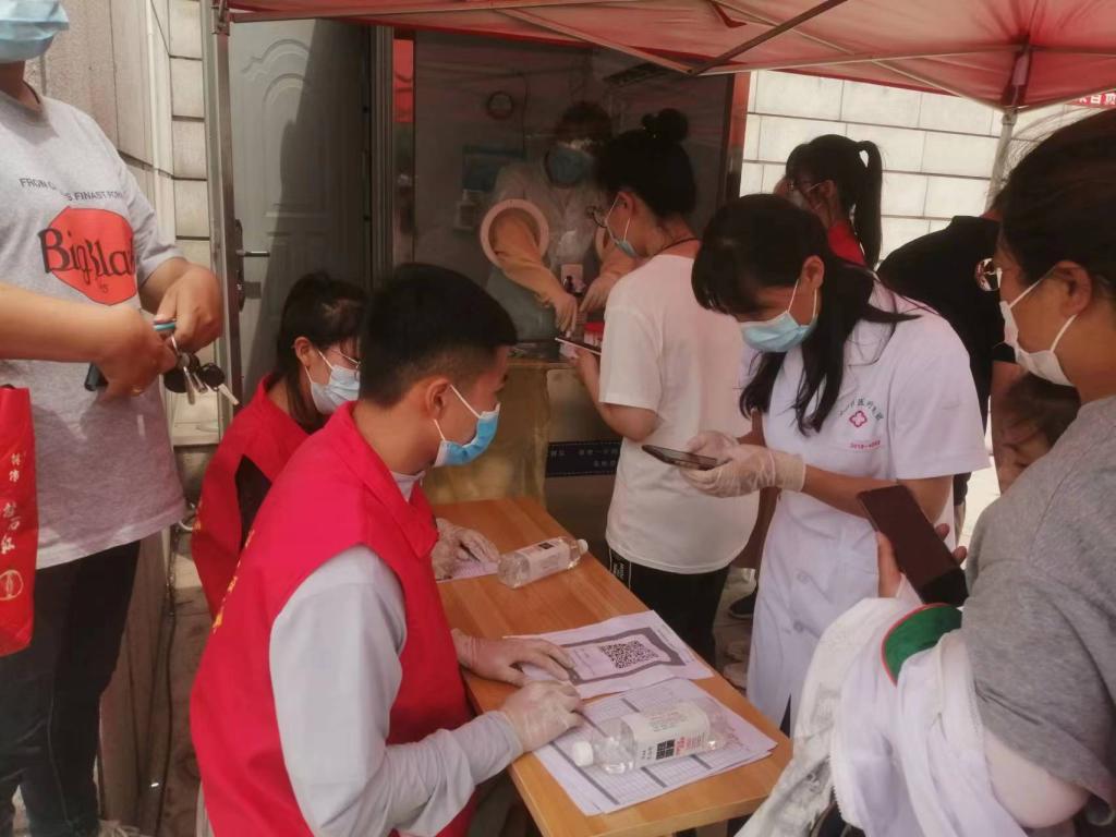 在暑假期间我报名成为了彦博小区的一名志愿者,主要是帮助医护人员填写做核酸人员的名单,帮一些老人小孩不会用智能手机的给他们操作并点开核酸采样码,提醒做核酸的人及时戴口罩并且保持前后间距不能插队,填写清楚做核酸人员居住情况和身份信息防止有人顶替去做核酸分类核酸数据保证10个一组不混乱这些就是我的主要工作一直从早上干到中午吃饭时间甚至都来不及喝口水,最让我哭笑不得的是一位采集核酸的医护人员忙活的裤子掉下来都不及提,图片中身穿红色志愿服的男孩是我工作时候的场景: