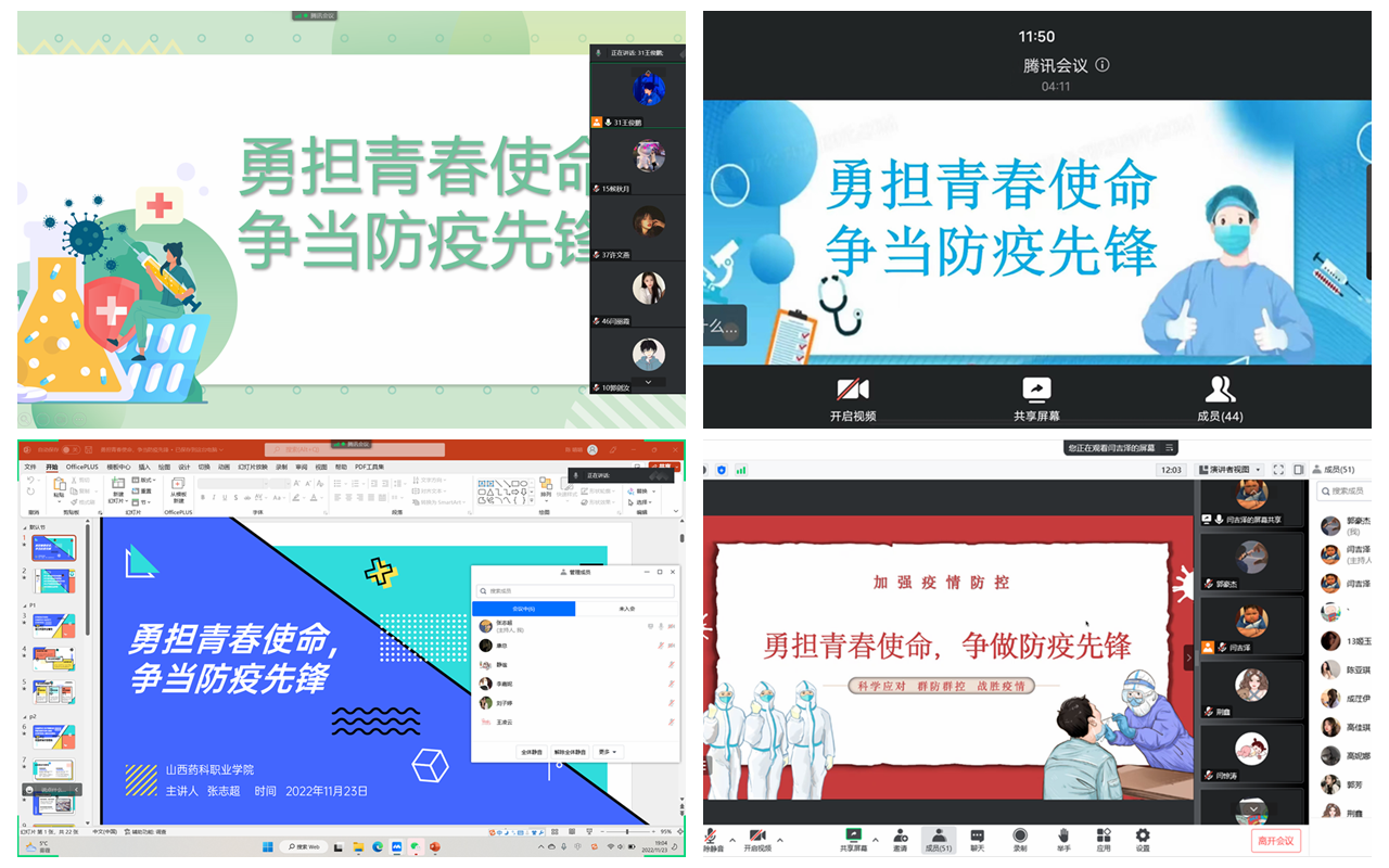 为深入贯彻党中央、省委和学院关于疫情防控的决策部署,全面落实进一步优化防控工作的二十条措施及我省细化举措,助力学院守好抗击疫情防线,11月23日,中药系分团委组织各团支部开展了“勇担青春使命,争当防疫先锋”主题团课。