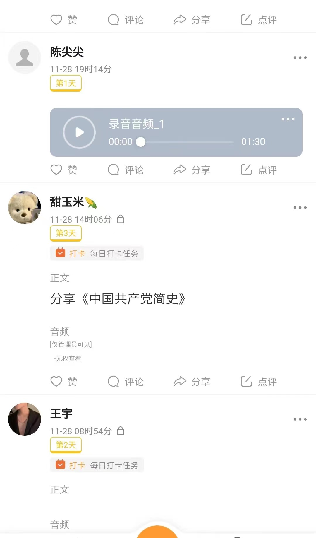 利用每日晨读时间,组织团员青年学习习近平总书记清廉语录、诵读经典著作。同学们选择自己喜欢的方式进行朗读,录制成相关音频、视频,在“小打卡”小程序上传打卡。《只留清白在人间》、《海瑞治贪》、《孔繁森:清正廉洁一心为公》……个人示范读、齐读、小组读大家从不同角度、不同层面深刻诠释清廉内涵。