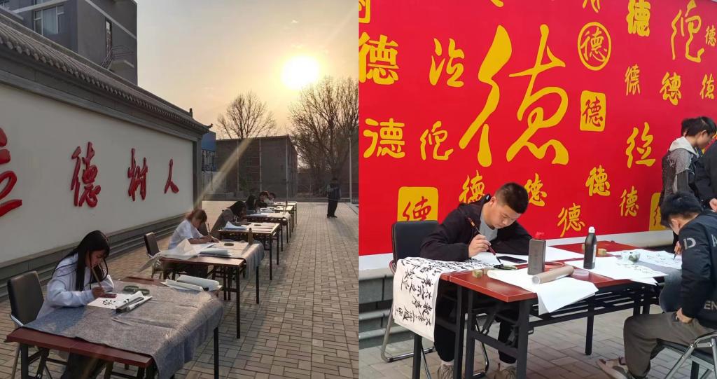 比赛现场,同学们个个精神饱满,神情专注。轻轻摊平书写纸,坐姿端正,全神贯注,点横撇捺,流畅自如,他们的软笔书法或婀娜多姿,或刚健遒劲,或苍劲有力,或端庄秀丽。一张张佳作跃然纸上,似书似画,传情达意,一笔一画展现汉字之韵,一张一弛抒发华夏之怀。