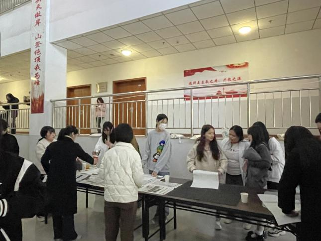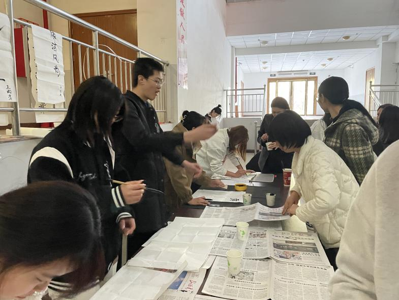 为广泛弘扬廉洁文化,给学生提供更加丰富多彩的实践交流平台,张扬学生个性和特长,提高学生审美能力,推进校园文化建设,营造爱廉、尚廉、倡廉、思廉的良好氛围,4月6日下午,学院丹青书画社在综合楼大厅组织开展了“清风颂静海,廉洁润我心”主题书法交流活动,部分社团成员与书法爱好者参加活动。
