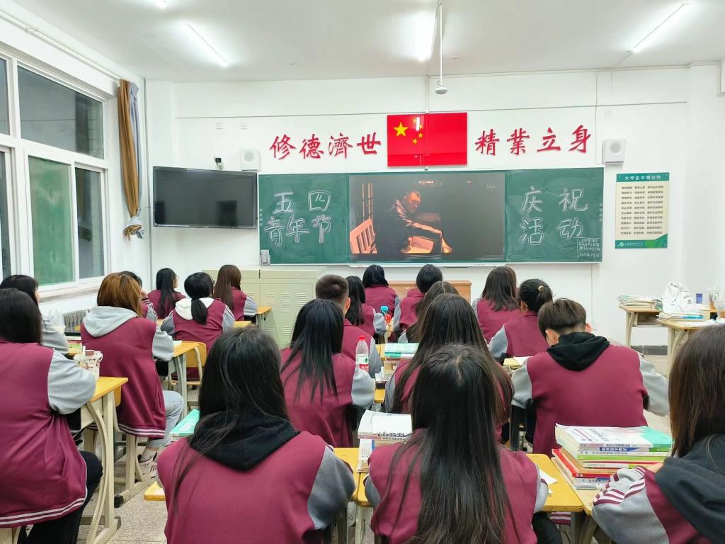 活动中,各班集体观看爱国影片《建党伟业》和纪录片《五四精神》,重温1919年爆发的五四运动的全过程,深刻理解了五四运动是先进青年知识分子为先锋、广大人民群众参加的彻底反帝反封建的伟大爱国革命运动,形成了以“爱国、进步、民主、科学”为内核的五四精神,拉开了中国新民主主义革命的序幕,促进了马克思主义在中国的传播,推动了中国共产党的建立。此后,在中国共产党领导下,一代又一代有志青年“以青春之我,创建青春之家庭,青春之国家,青春之民族,青春之人类,青春之地球,青春之宇宙”,在救亡图存、振兴中华的历史洪流中谱写了一曲曲感天动地的青春乐章。