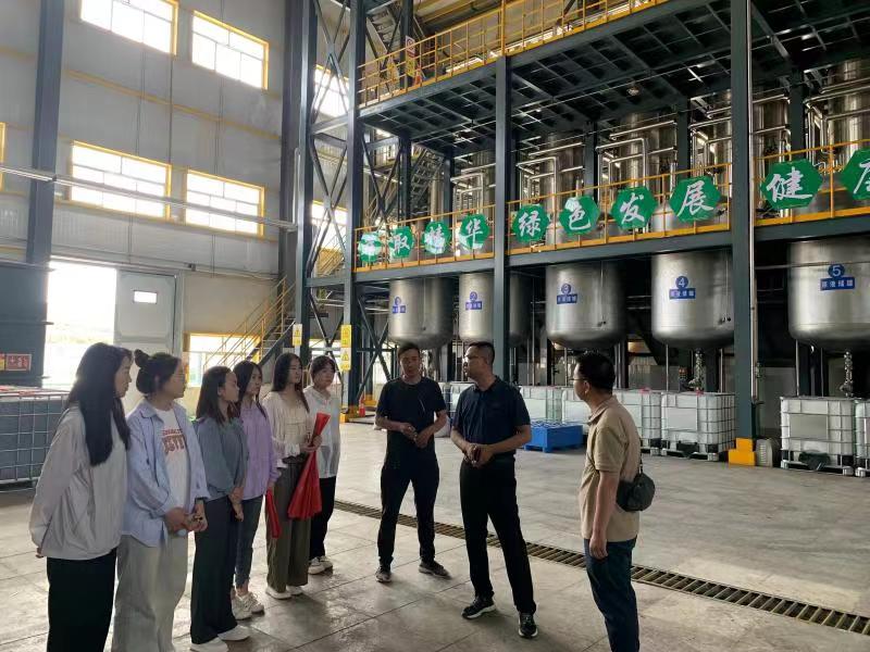 在山西绿之金生物科技有限公司,我们有幸聆听了山西大学晋药标准化与资源利用研究院副院长、博士生导师李科教授的讲解。他表示,公司致力于生产中药提取物,主要开发以黄芩素、连翘酯素为主的替抗中兽药、饲料添加剂和以五花参和火麻仁为主的功能性食品。他为我们详细介绍了绿之金的中药提取车间、混合型饲料添加剂车间和配套实验室,展示了完整的提取、酸沉、精制、浓缩、干燥等设备,很多专业术语和数据让我们的同学受益匪浅。