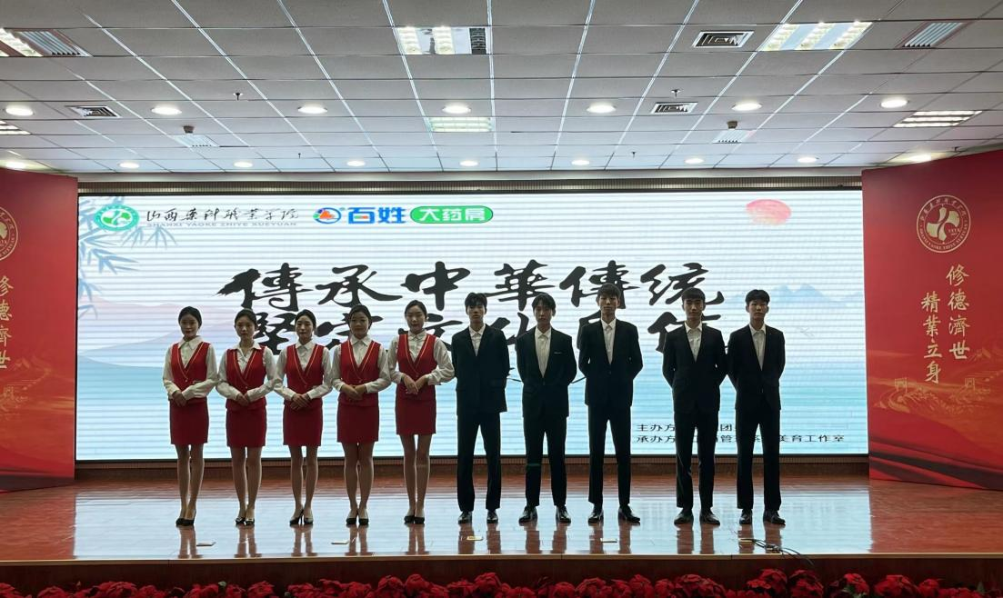 为进一步弘扬中华民族优秀的传统礼仪文化,展现青春风采,进一步促使大学生掌握现代礼仪规范,树立大学生良好形象,同时为进一步更多的大学生参加到学习礼仪的队伍中来,2023年6月8日,学院第九届校园文化艺术节“百姓”杯礼仪风采大赛在学院报告厅隆重举行。本次礼仪风采大赛由学院团委主办,工商管理系、美育工作室承办,山西百姓药房连锁有限公司冠名赞助比赛。