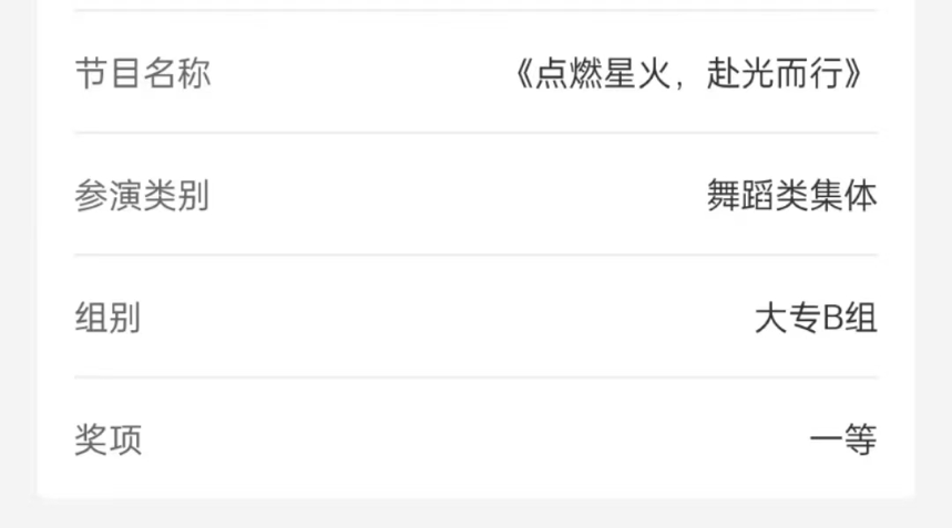 该项赛事于2023年10月29日在山西华夏剧场举行。由我院教师尹雪婷老师带队参加,此次成绩的取得,展现了山西药科职业学院青年学子风采,群舞《点燃星火,赴光而行》通过舞蹈语汇,刻画出新时代下青年们顽强的求生力量,和遇到困难百折不挠的坚毅精神,展现了当代青年蓬勃向上的精神风貌,增强了文化自信。台上舞者们或软如云絮,或臂力铿锵,每一帧都宛若绝美画卷。
