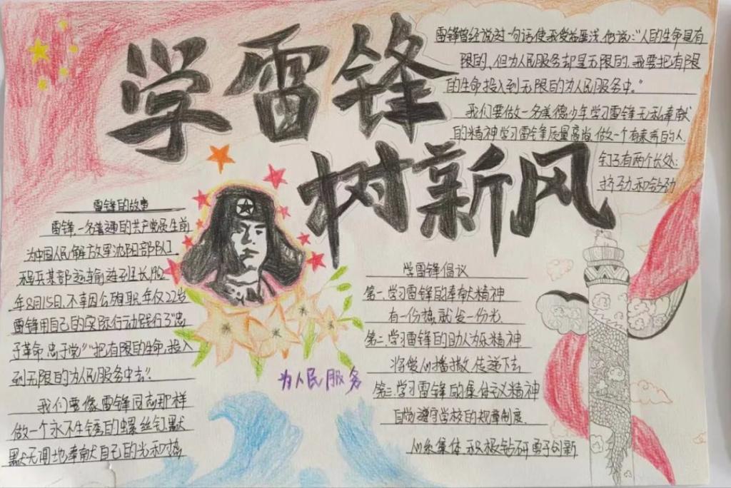 本次活动以“学习雷锋,传递爱心”为主题,旨在通过手抄报这一形式,让同学们更好地了解和传承雷锋精神,培养同学们的社会责任感和奉献精神。活动自启动以来,各班同学踊跃报名,积极参与,用自己的智慧和双手,创作出了一幅幅精美的手抄报作品。
