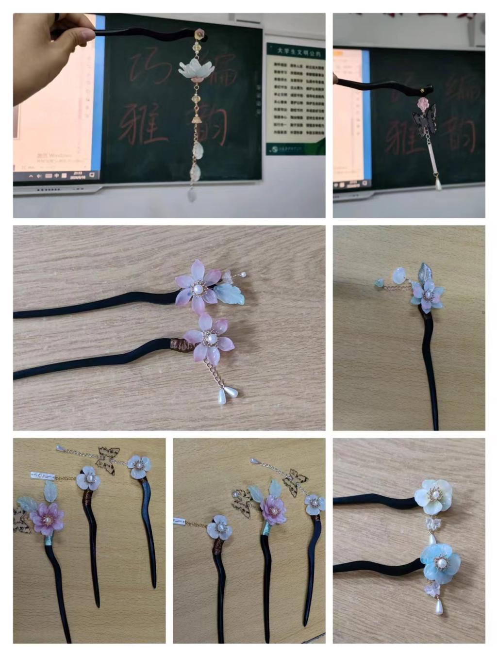 为了推动新时代文明实践活动的扎实开展,提升学生动手能力和创造能力,让更多的人了解到中国传统文化,同时传承民族文化特色,6月18日,食品系分团委举行了“以簪寄情,巧编雅韵”发簪制作体验活动。