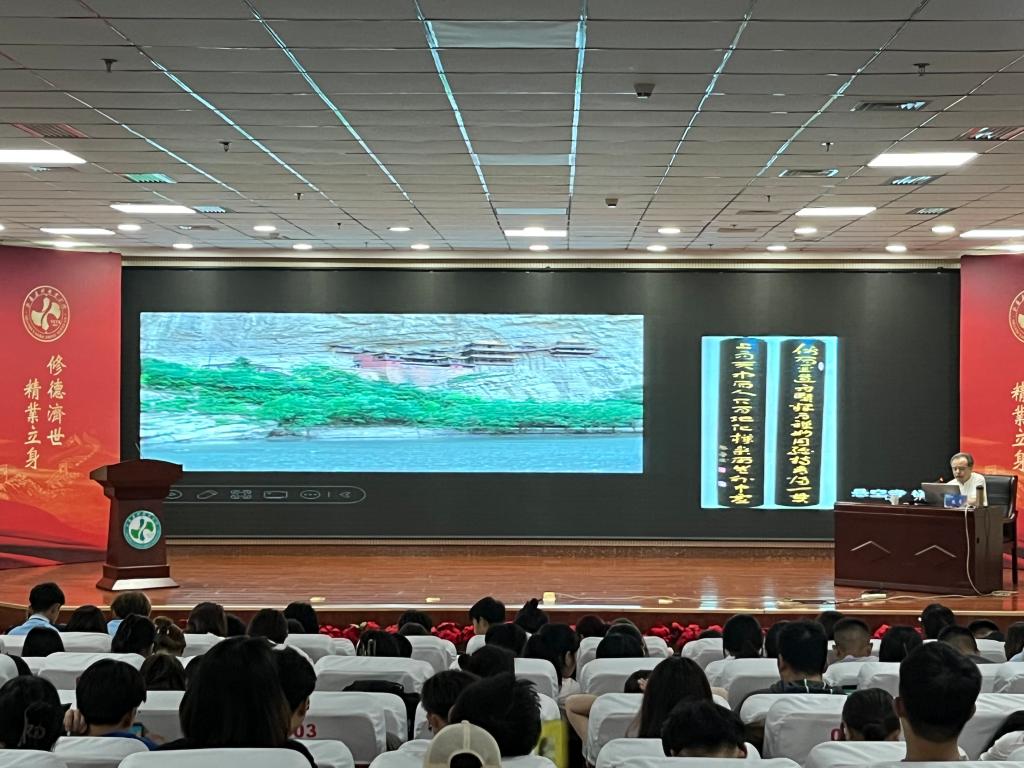 5月20日,院团委邀请我省著名书法家熊晋老师为“五育大讲堂”带来《书法品鉴》专题讲座。熊晋老师多年来一直从事书法研究和创作工作,他旁征博引并结合自己的书法创作感受,系统全面地介绍了如何欣赏书法、书法的风格演变和历史意义、现实意义等方面的内容,精彩的讲座使同学们初步感知了中国书法艺术的精粹,充分认识了中国传统艺术的神奇魅力,为在广大同学中普及书法知识、欣赏书法作品奠定了良好的基础,也为我们学院坚持做好美育教育提供了宝贵的知识和经验。